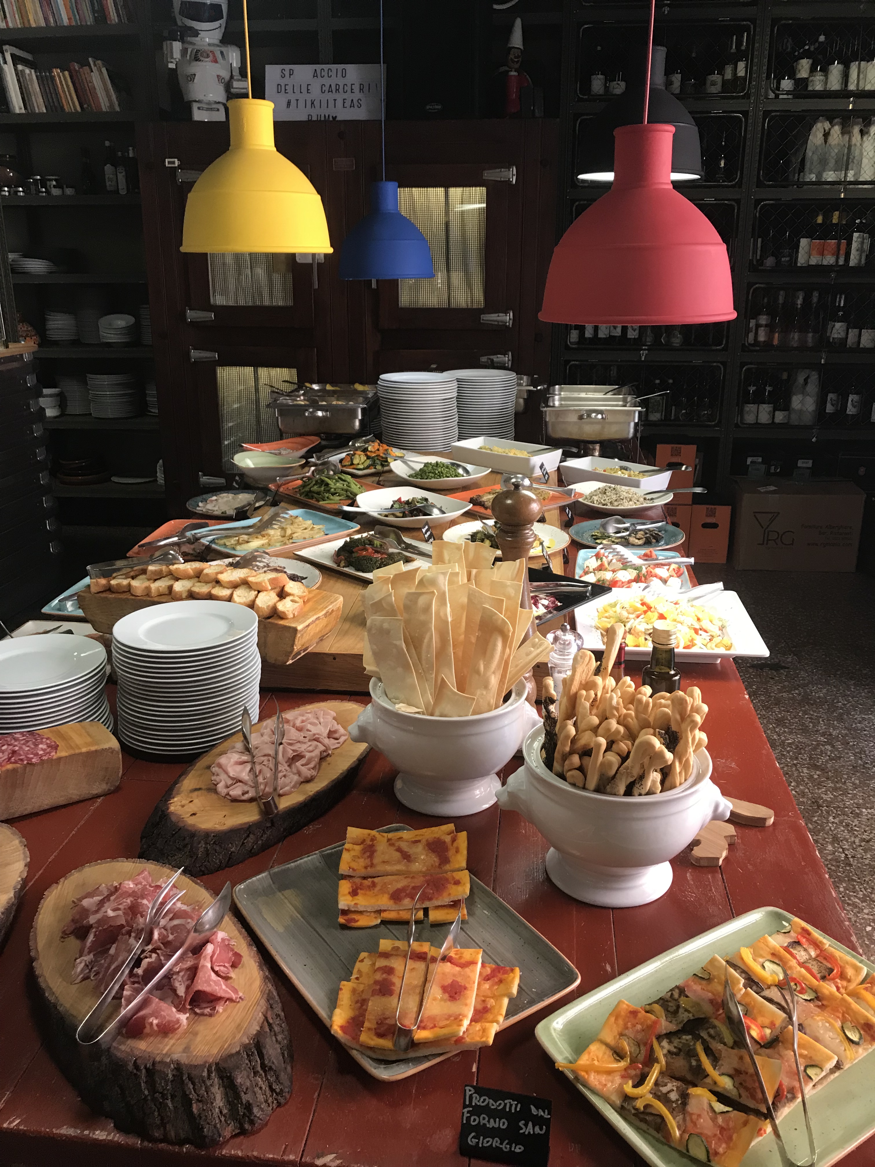 Pendant le séjour j’ai pu goûter à la véritable la cuisine italienne et je vais y avoir le droit toute l’année ! Voilà le type de restaurant où l’on peut déjeuner à Modène, pour 12€ vous avez un buffet à volonté qui se compose de bon produits frais italiens, antipasti, pasta, prosciutto… Celui-ci se trouve juste en face de mon université, c’est le Spaccio delle carceri, via Bonacorsa.
