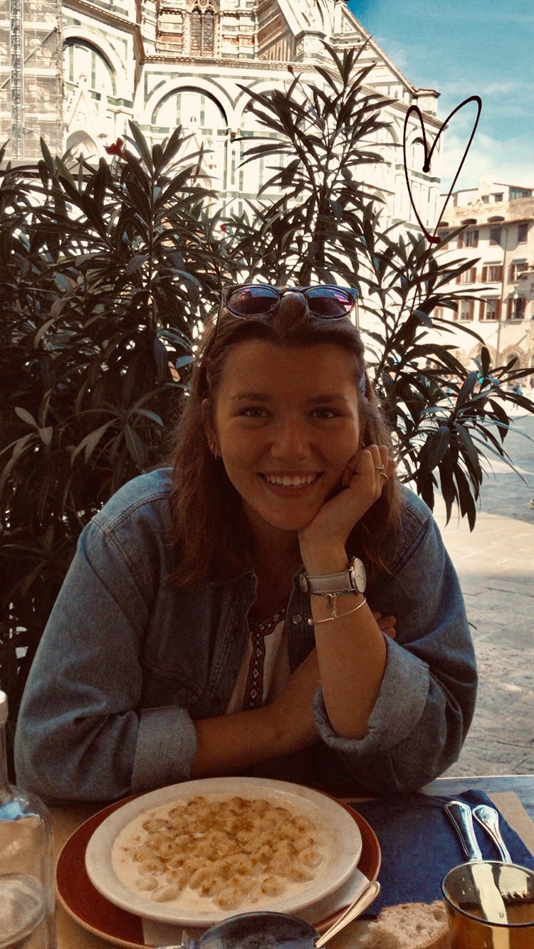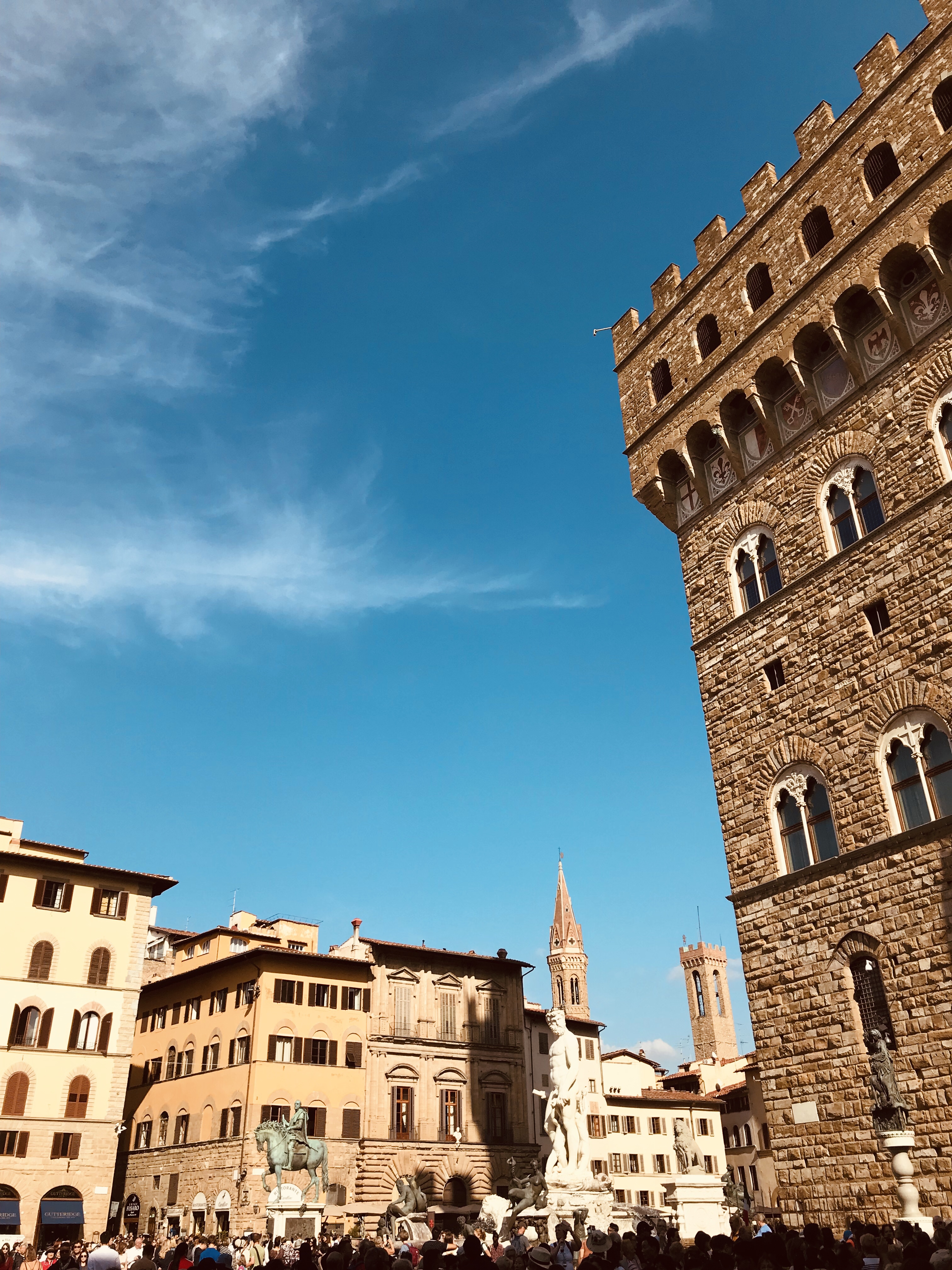 Nous nous sommes baladées dans les rues de Florence, nous avons vu la Cattedrale di Santa Maria del Fiore. Nous avons mangé dans un petit restaurant juste à côté, Il sasso di Dante, où j’ai pris des gnocchis au gorgonzola et à la truffe, c’était délicieux !