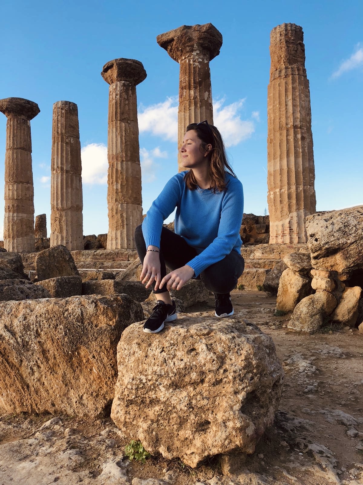 Nous avons fait une excursion d’un jour à Agrigente pour aller voir la Valle dei templi. J’avais des aprioris sur le système de transport sicilien mais tout m’a prouvé que j’avais tort, il y a de nombreux bus et de nombreux trains qui sont à l’heure et modernes. Nous avons donc fait deux heures de train pour rejoindre le sud de l’île et arriver à ce site archéologique unique au monde. Il témoigne d’une cité fondée en 582 av JC par des colons Grecs de Géla. Ces ruines grecques sont inscrites au patrimoine mondial de l’UNESCO et nous avons eu de la chance de pouvoir les admirer car c’était le dernier jour avant la fermeture hivernale. Nous étions seuls sur le site et la température était parfaite, j’imagine qu’en été ça doit être remplis de touristes et la chaleur doit être étouffante.