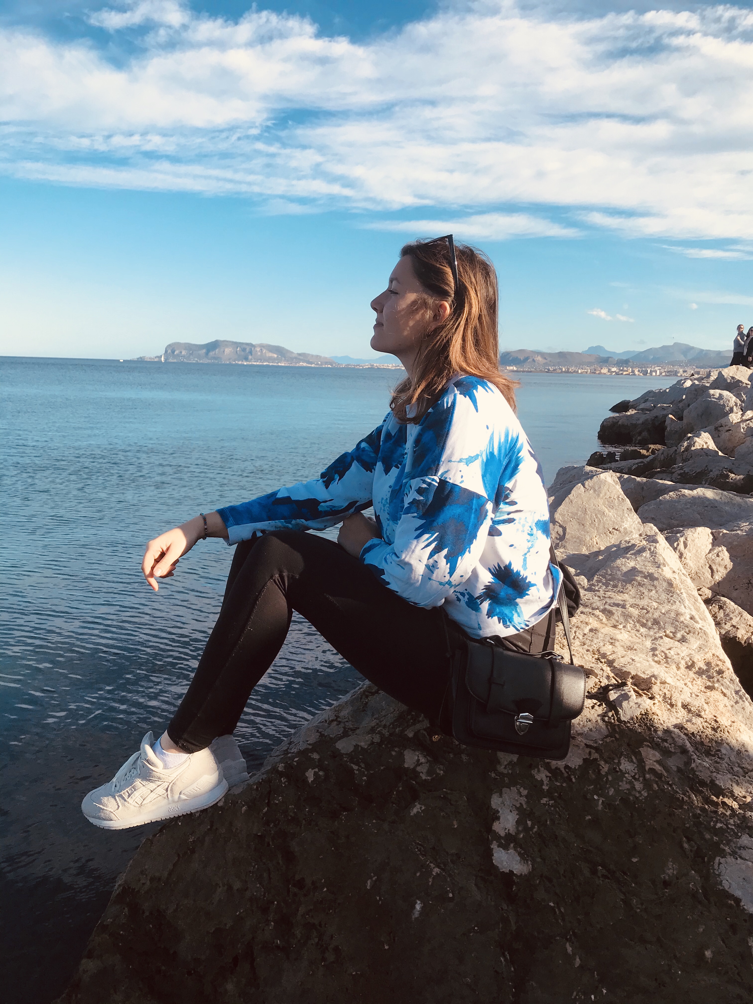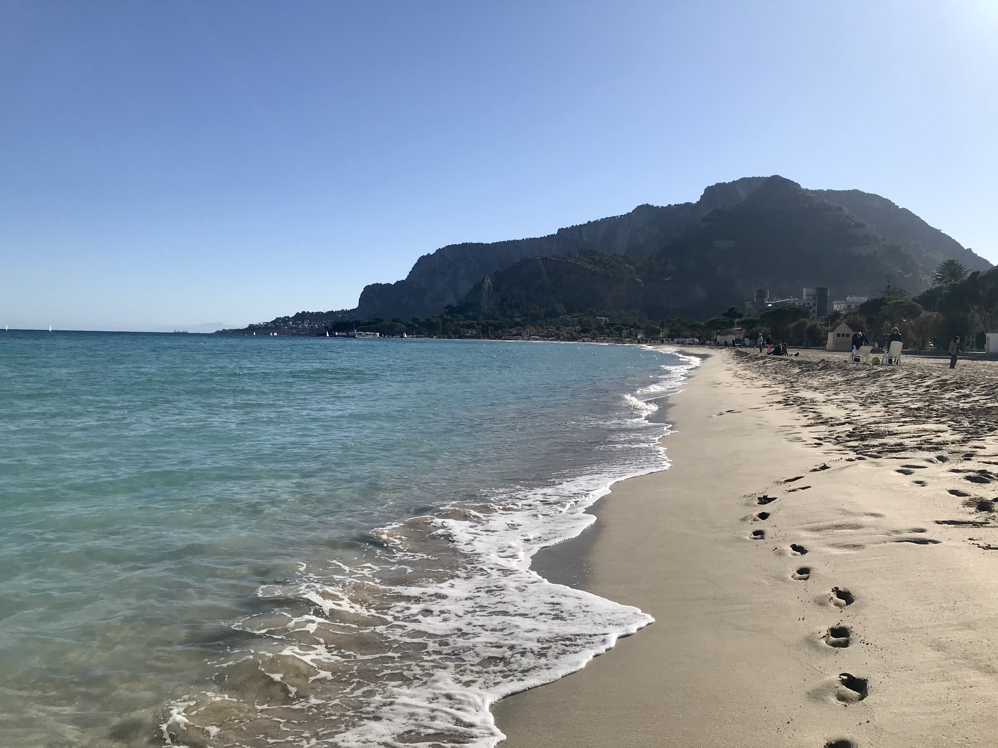 Le dernier jour nous avons pu profiter de la plage de Mondello, plage de sable fin et eau bleu turquoise. Le temps était très agréable, j’ai pu me tremper les pieds dans l’eau en décembre!