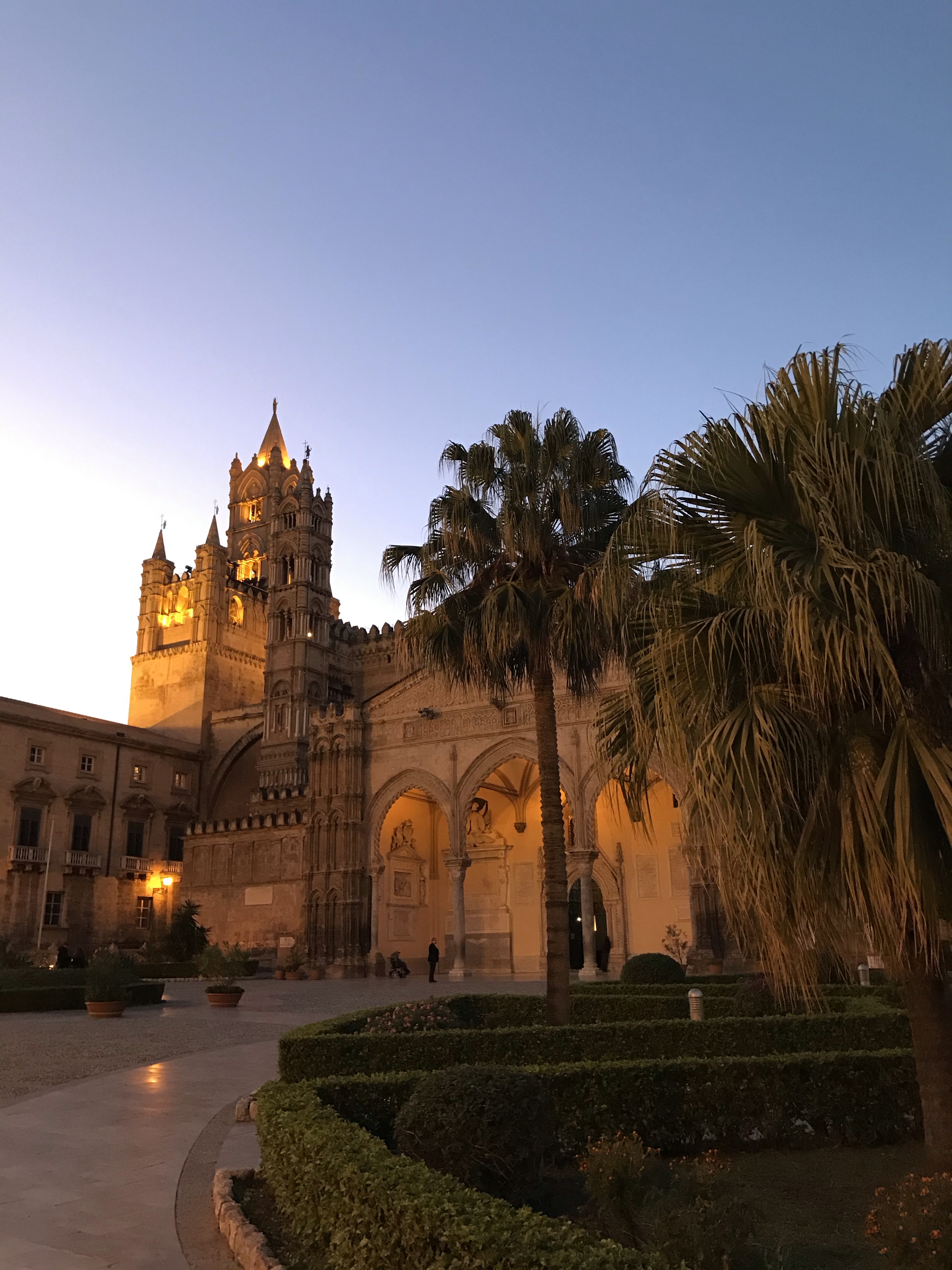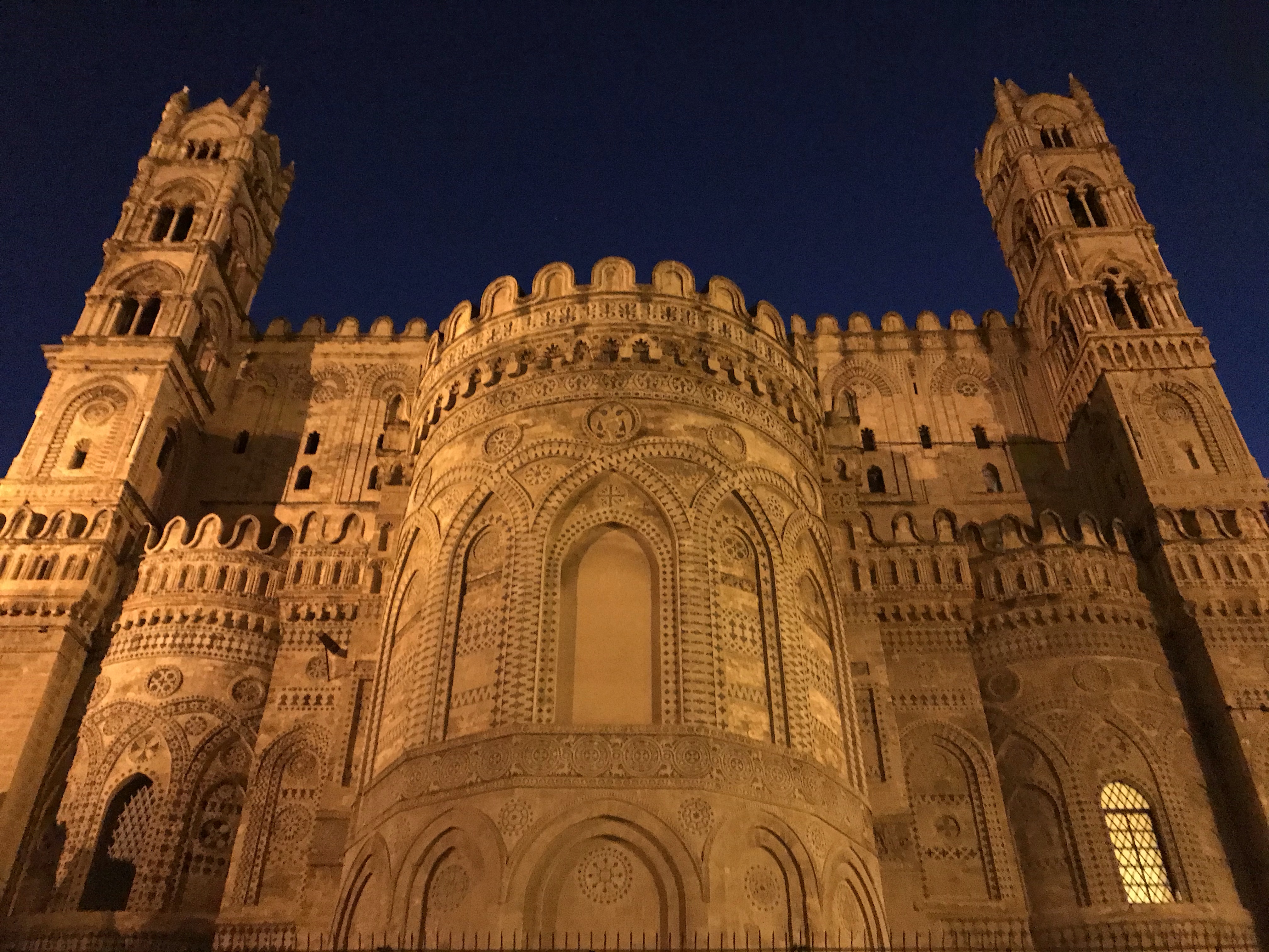Il est très agréable de se balader de nuit dans les rues de Palerme, il y a une douceur de vivre, on se sent en vacances. La cathédrale de Palerme est un lieu incontournable elle fut édifiée au XIIe siècle et est d’une grande beauté.
